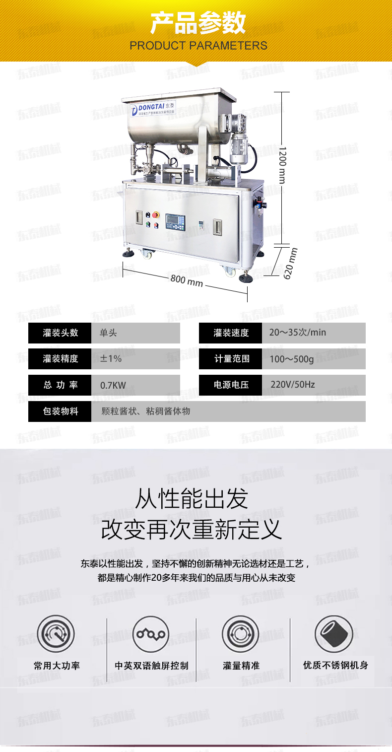 1.防滴漏灌裝頭:316L不銹鋼精制而成,專(zhuān)為醬料灌裝設(shè)計(jì),通過(guò)型好,內(nèi)外精拋,真正的食品級(jí)
