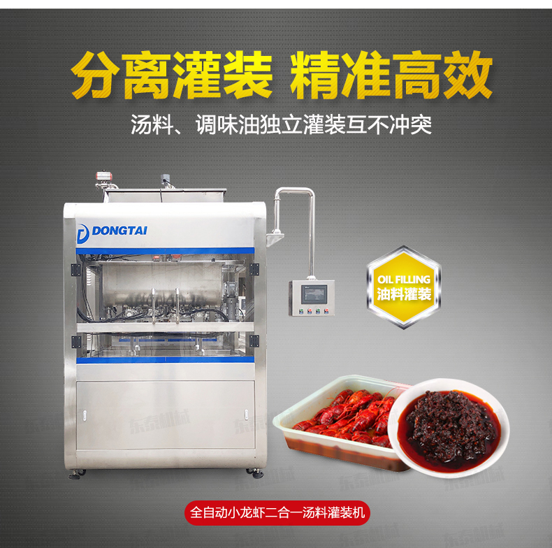 紅油辣椒醬自動(dòng)灌裝機(jī)針對(duì)于調(diào)味小龍蝦深加工行業(yè)的調(diào)味油、湯料的加注,整個(gè)系統(tǒng)為直線式傳送結(jié)構(gòu),湯料、調(diào)味油可在同一臺(tái)設(shè)備上實(shí)現(xiàn)準(zhǔn)確定量,且湯料、調(diào)味油為獨(dú)立的灌裝系統(tǒng),互不沖突,具有灌裝范圍廣、速度快、維護(hù)簡單等特點(diǎn),該系統(tǒng)可大大減少生產(chǎn)環(huán)節(jié)中的浪費(fèi),同時(shí)也提高了生產(chǎn)效率,為企業(yè)節(jié)約生產(chǎn)成本。