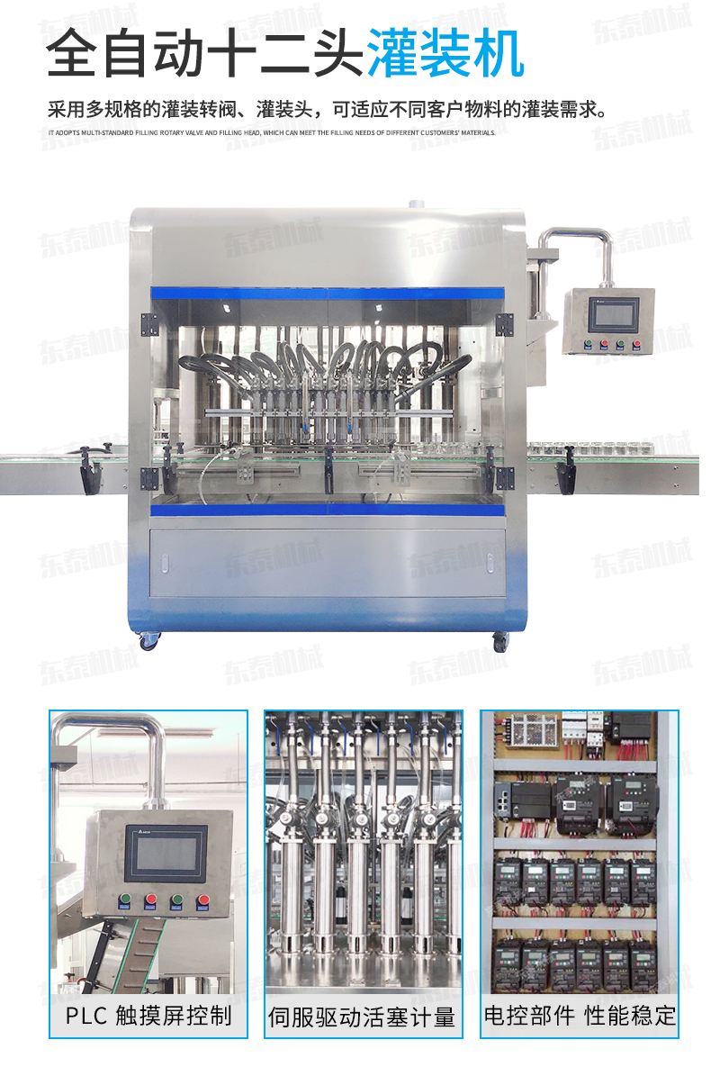 2、灌裝機(jī)以進(jìn)口PLC電腦控制、伺服驅(qū)動計量,全彩色觸摸屏人機(jī)界面,一鍵完成計量切換確保容量之調(diào)整簡易、快捷、準(zhǔn)確。是任何形式的灌裝機(jī)無法替代的;
