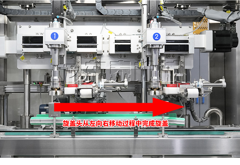 4、旋蓋(瓶子不停頓,抓具一邊跟著瓶子走,一邊進(jìn)行旋蓋動(dòng)作)