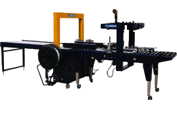 該打包機自動封箱,自動捆扎,光電感應,精確無誤,自動輸送,自動轉(zhuǎn)向,可調(diào)節(jié)打包距離。