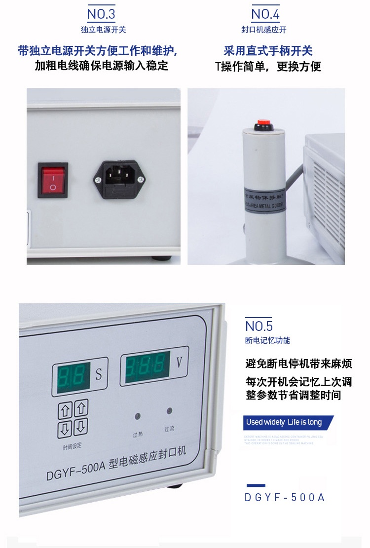 該封口機是一種便攜式電磁感應加熱封口設備,專為制藥、化工、農藥、食品、化妝品、輕工行業(yè)對容器進行鋁箔嚴密封口。封口材質使用廣泛,可以是聚乙烯、聚丙烯、聚苯乙烯、聚酯以及玻璃瓶,但不能用于金屬瓶體及瓶蓋。本機小巧輕便,使用簡單,適用于小批量生產(chǎn)和實驗室作業(yè)。本機采用國外先進線路,選用日本最新模塊化功率器件,較于一般電子感應加熱器更省電,熱效率達到90%以上,瞬時加熱速度為后者的20-30倍,因此不僅適用于熱封性能較好的聚乙烯、聚丙烯材質的瓶體,而且對熱封性能較差的聚酯瓶、玻璃瓶也有極好的封口效果。