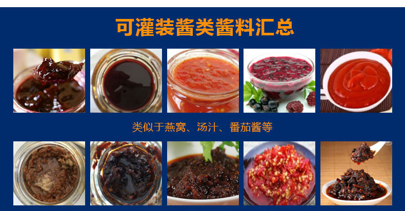 適用范圍:小型辣椒醬灌裝機主要適用于那些含顆粒的顆粒漿狀流體、半流體、膏體、醬狀類的物料灌裝,各種勻質醬料、火鍋底料、老干媽辣椒醬、干煸牛肉醬、泡椒、牛肉粒醬、香菇丁醬、八寶菜、蘿卜丁、含干煸臘肉丁、辣子雞丁、油炸花生等大顆粒、含油量少等干煸辣椒醬的灌裝。