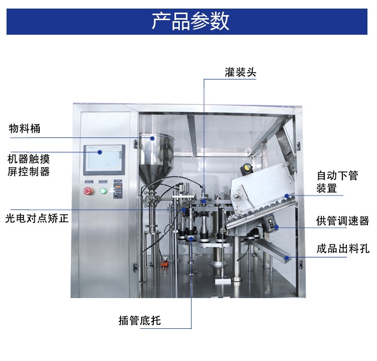 A、RGNF-30適用于醫(yī)藥、食品、化妝品、日用化工用品等行業(yè)的塑管、鋁塑復(fù)合管灌裝封尾需要�?蓪⒏鞣N 糊狀、膏狀、粘度流體等物料順利準(zhǔn)確地注入軟管中,并完成管內(nèi)熱風(fēng)加熱、封尾和打批號、生產(chǎn)日期等。