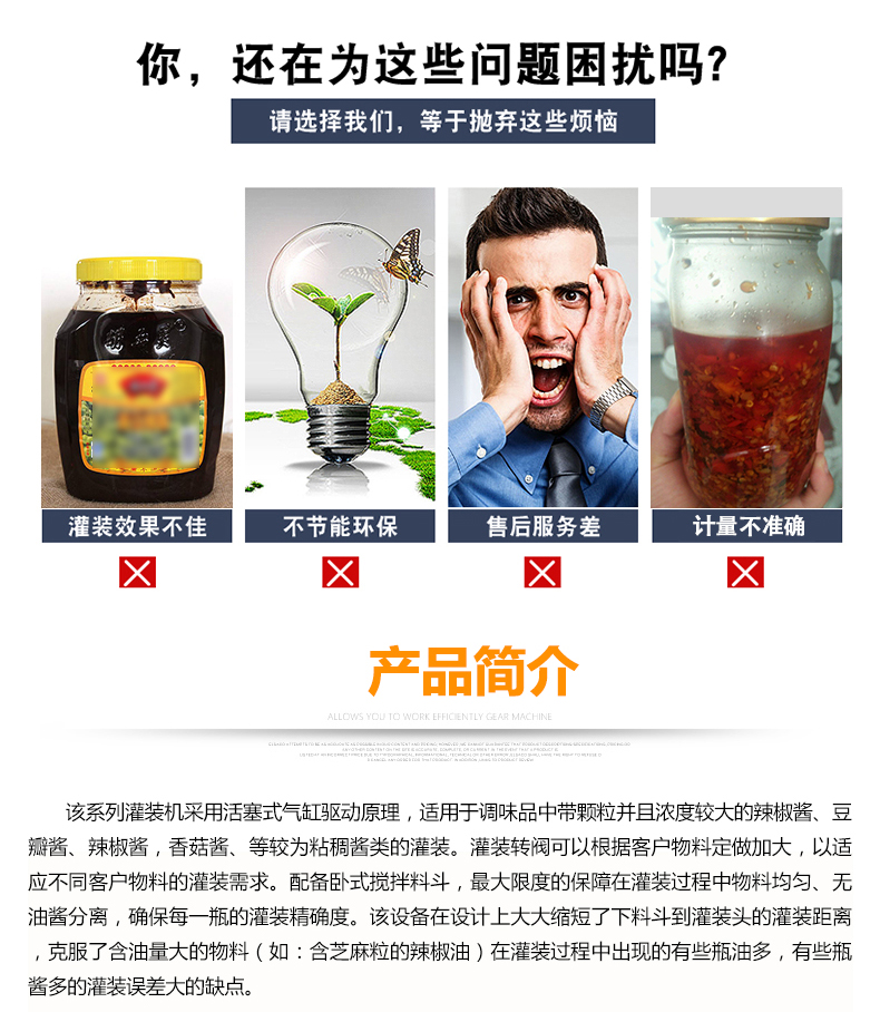 備注:果醬、醬料、花生醬、番茄醬、醬料、豆瓣醬、辣椒醬、蝦醬、蘋果醬、沙拉醬、魚子醬、辣醬均可以灌裝。