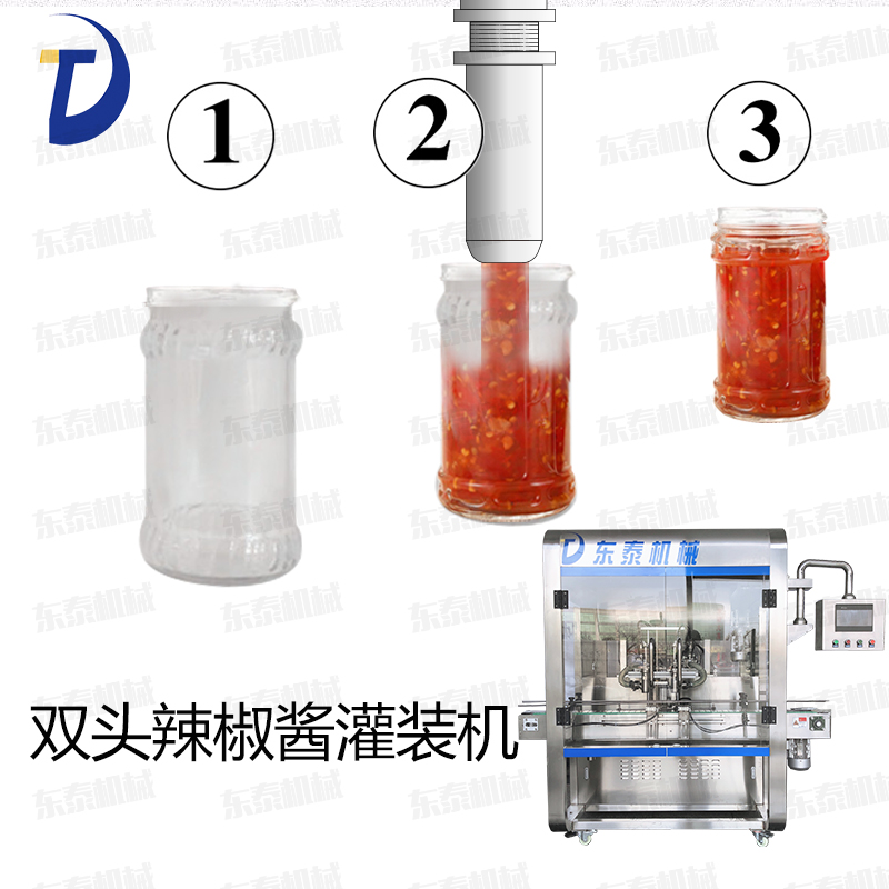 辣椒醬灌裝機(jī)采用活塞式灌裝原理,適用于調(diào)味品中帶顆粒并且濃度較大的辣椒醬、豆瓣醬、花生醬、香菇醬、果醬、牛油火鍋底料、紅油火鍋底料、蝦醬等較為粘稠醬類的灌裝。
